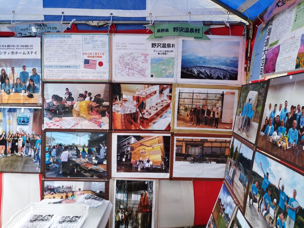 ブースでは姉妹友好都市の米国フォスターシティ市、北海道大空町、長野県野沢温泉村、